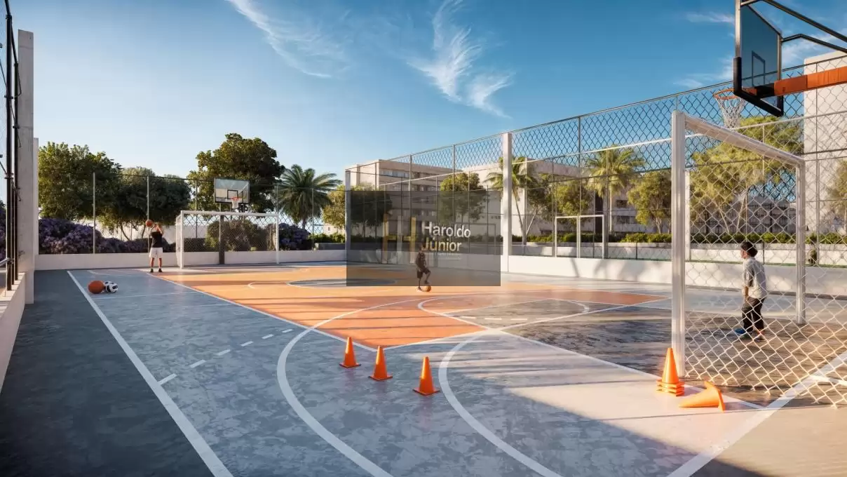 Áreas de esportes com campo de futebol gramado,quadra poli esportiva e de areia ,academia,
