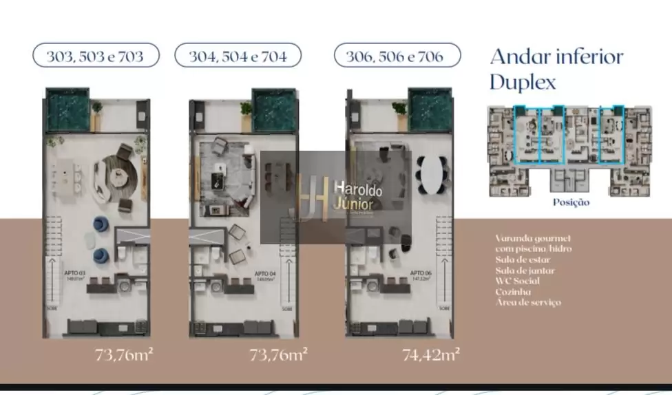 Acordar todos os dias com a brisa do mar e aquela sensação de liberdade e tranquilidade é bom demais. Não há nada melhor do que poder caminhar pela praia, praticar esportes aquáticos e relaxar em uma paisagem única. Um dos diferenciais do Residencial são as áreas de lazer privativas e as varandas com piscinas. Basta abrir a porta, deixar a brisa entrar, curtir a vista e aproveitar sua piscina exclusiva.