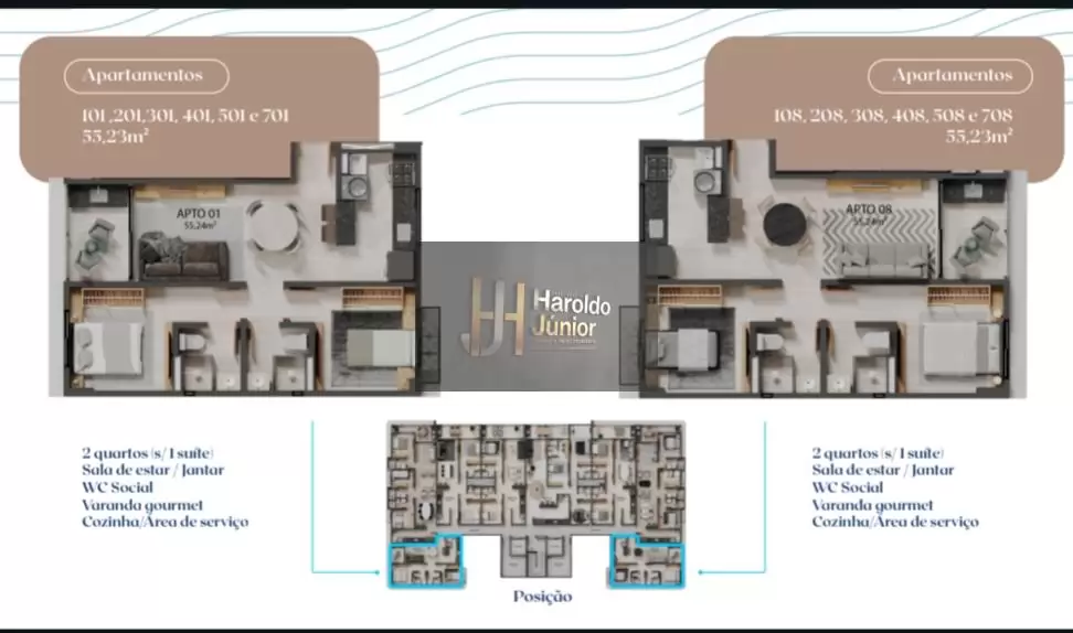 Dormitórios: 3 (2 Suítes)
